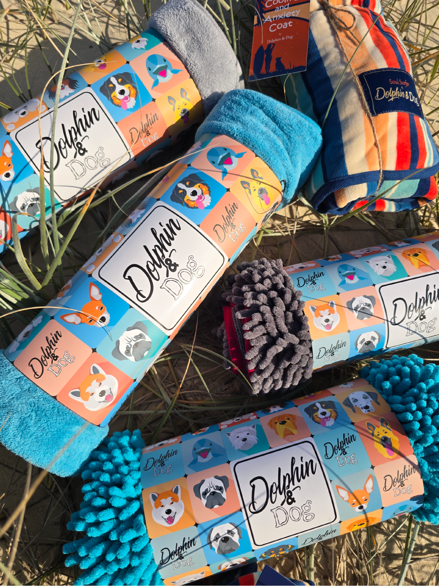 Wow these are beautiful towels and they are beautifully packaged! These arrived in the cutest and nicest gift box! It is covered in colorful and adorable illustrations of little doggies and happy dolphins! I can't bring myself to throw it away it's so nice and will probably use it to store dog toys. This would make a wonderful gift for your favorite dog-lover!The towels were perfectly rolled up inside and presented so well. They are such good soft and plush towels, and very large, too. They are perfect for drying your dog off after a bath as they have two hand pockets on one end that make them easy to keep to keep a hold of. They are soft enough to use for bedding in your dog's crate or carrier. The embroidered logo is a nice and whimsical touch that adds just a little something extra that sets them apart aesthetically.My very energetic and playful 37 lb, 2 yea-old, english cocker loves to jump up and grab hold of the towels as a game, like tug of war, so I can attest to the fact that they are very durable! I can't believe that he hasn't ripped or torn one of them, as much as he has pulled and tugged on them! These are winners in my book and I expect that anyone would be more than pleased with this excellent set!
