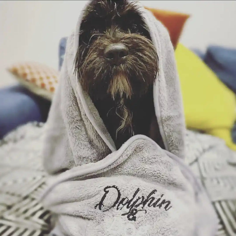 If you’ve ever tried to dry a soaking wet dog with a normal bath towel, you know the struggle. Instead of actually absorbing the water, it just seems to push it around the coat. My MicroTech™ Performance Towel is engineered with the same high-density 400 GSM fabric I use in my drying robes. It grabs and locks onto moisture instantly, pulling it deep from the undercoat and cutting drying time in half.